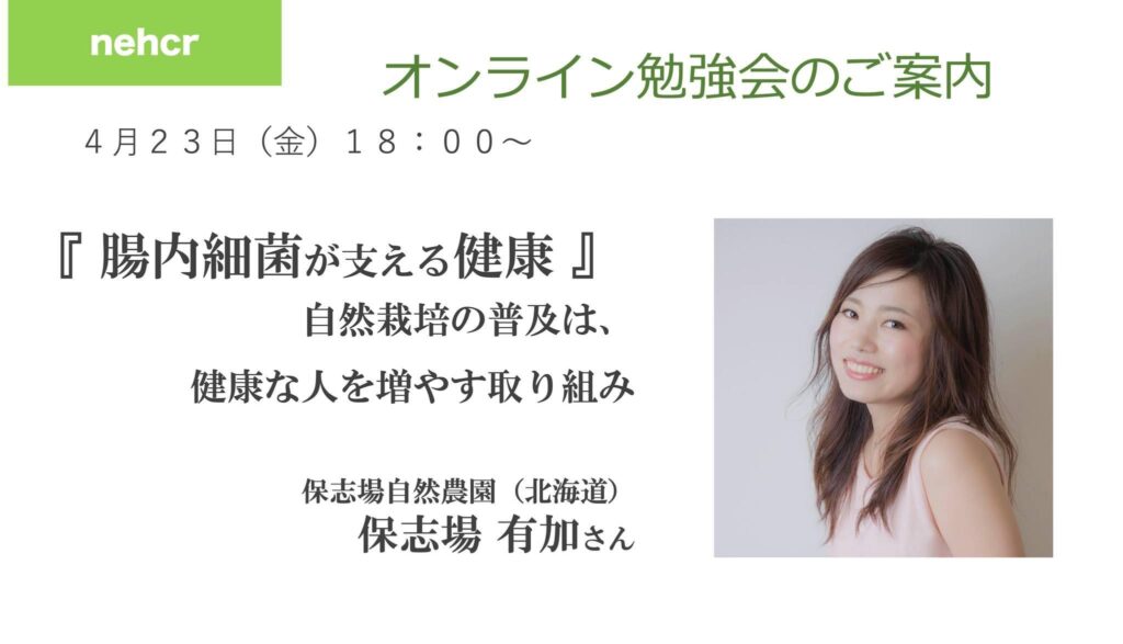 第二回ナチュラルファーマー勉強会は、講師に北海道の保志場自然農園の保志場有加さんをお招きしてオンラインで開催します。
